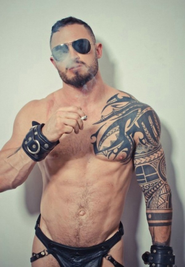 封面男士超级魅力的传统半甲纹身图片