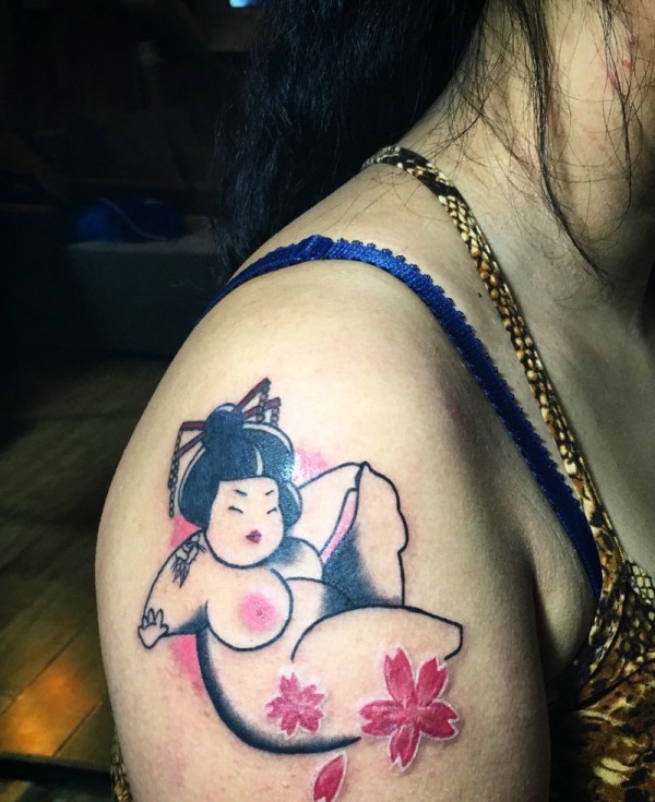 大臂一枚日式胖妹子纹身图片性感邪恶