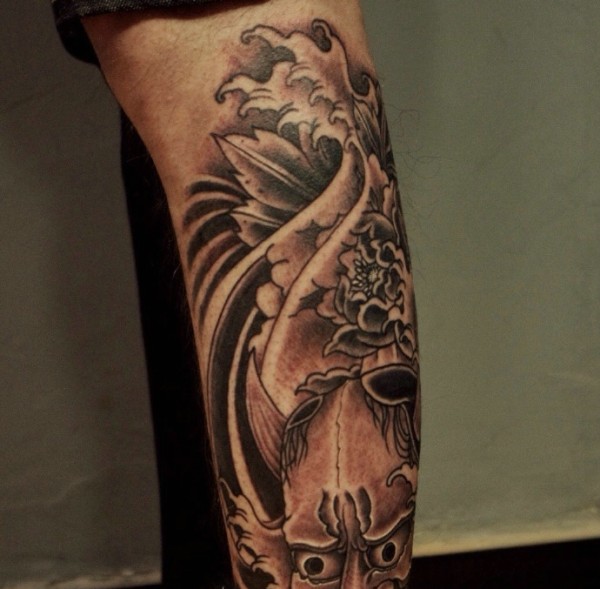 传统鲤鱼花小腿纹身_腿部纹身图案大全_纹身图吧