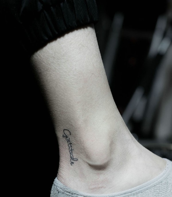 脚踝羽毛文身作品