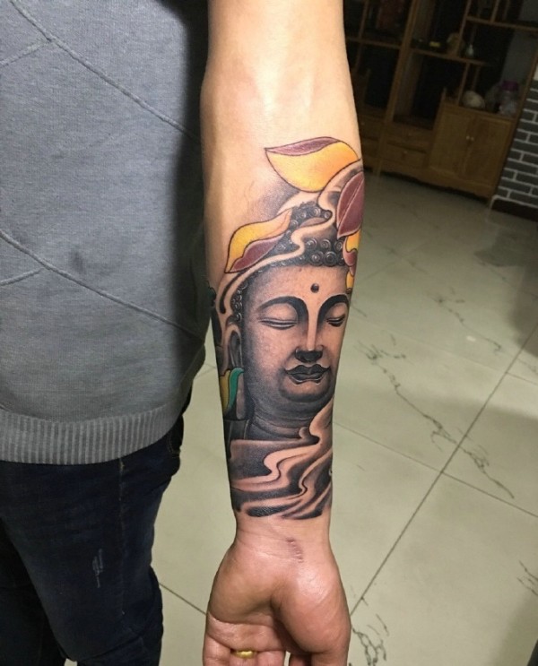 手臂佛像纹身图片霸气十足