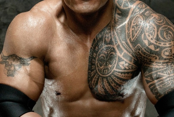 肌肉男士拥有劲爆的传统半甲纹身图片