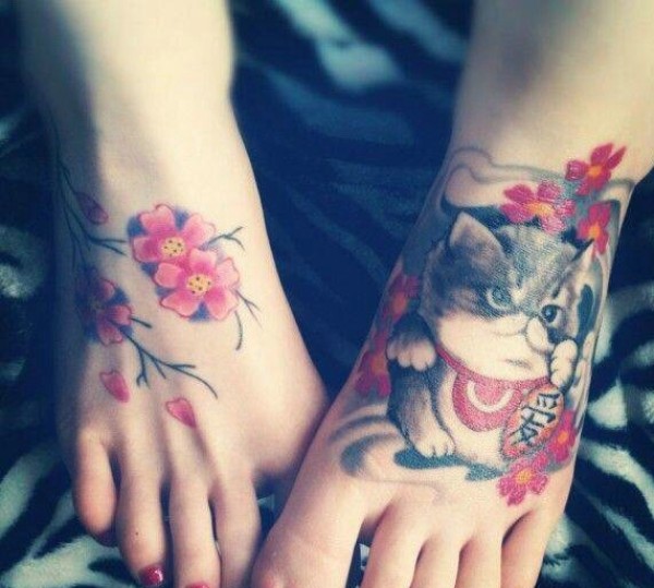 清新小桃花脚踝纹身_脚部纹身图案大全_纹身图吧