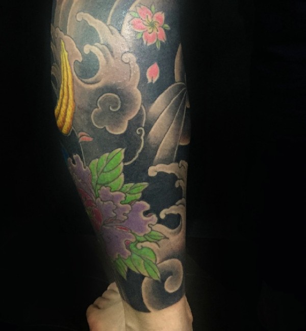 日式风格的传统花腿纹身作品欣赏