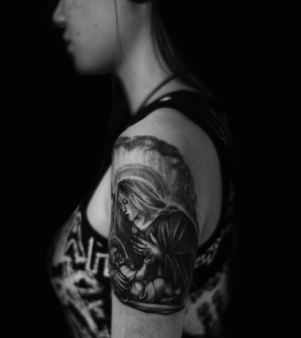 手臂黑白图腾纹身图片创意十足