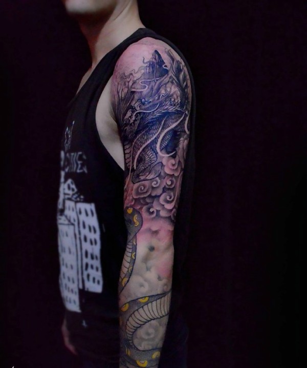 手臂莲花蛇纹身图案_臂部纹身图案大全_纹身图吧