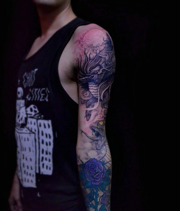 手臂莲花蛇纹身图案_臂部纹身图案大全_纹身图吧