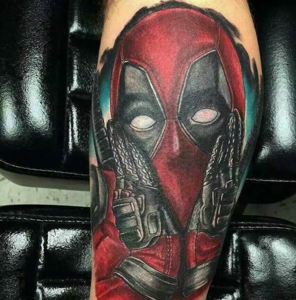 帅气的彩色花腿纹身水墨画纹身图案
