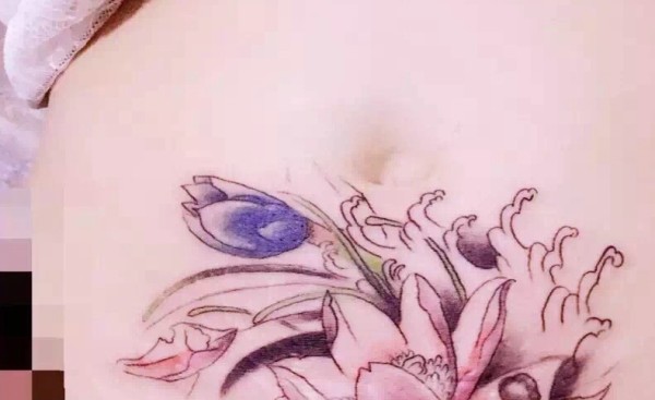 女性腰部莲花花纹刺青_腰部纹身图案大全_纹身图吧