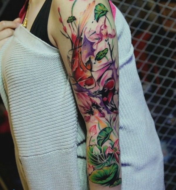 手臂莲花蛇纹身图案_臂部纹身图案大全_纹身图吧