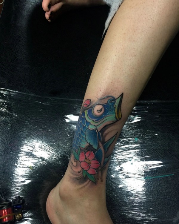 处在不同部位的蓝鲤鱼纹身图片意义不同