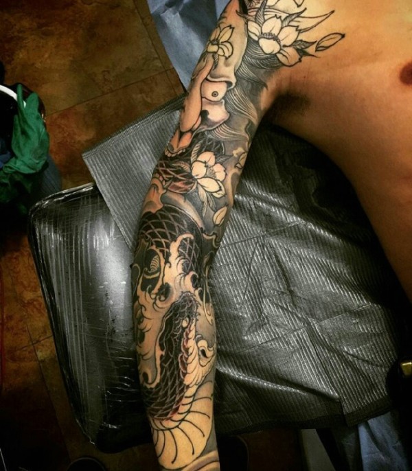 手臂莲花蛇纹身图案_臂部纹身图案大全_纹身图吧
