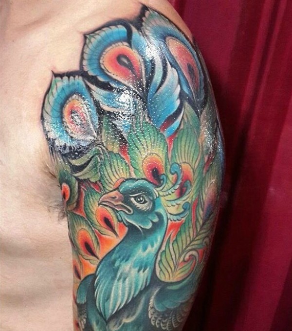 几款彩色孔雀纹身图案美美哒