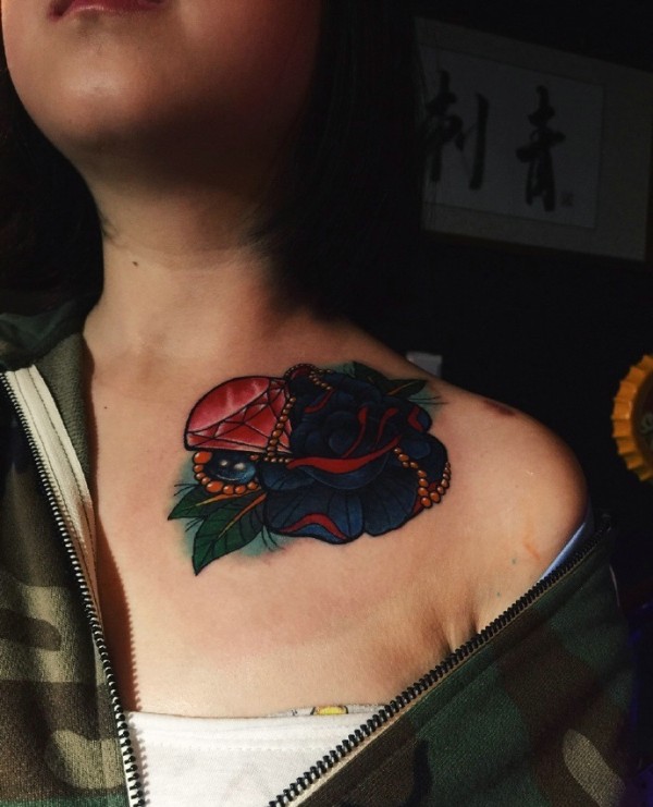 处在女生锁骨上的个性美丽纹身图片