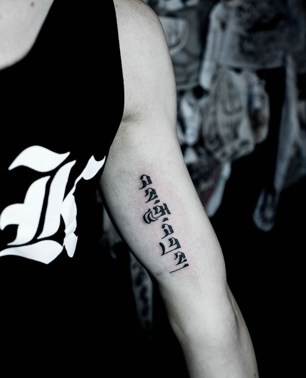 手臂内侧简陋的时尚梵文纹身图片