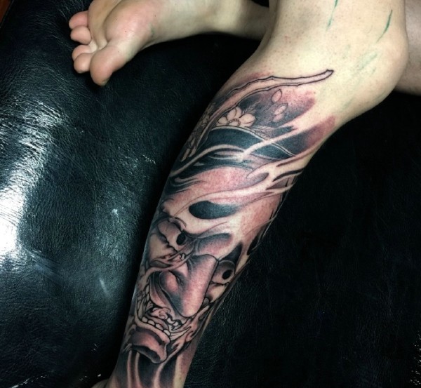 日式风格的传统花腿纹身作品欣赏