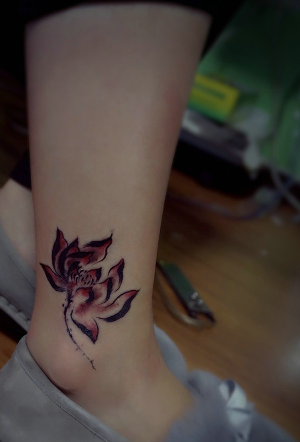 落在腿部一枚莲花纹身图片优雅高贵