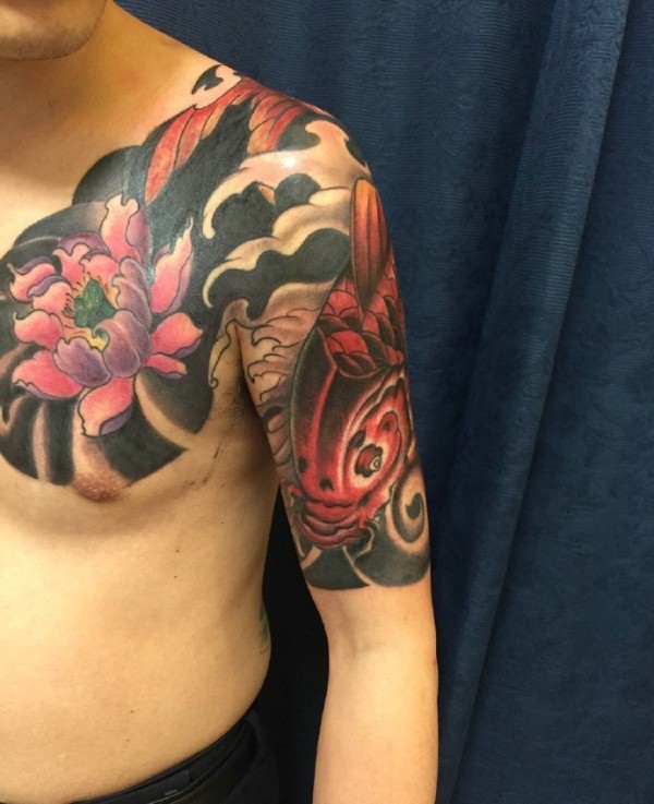 鲤鱼与莲花结合的半甲纹身图片