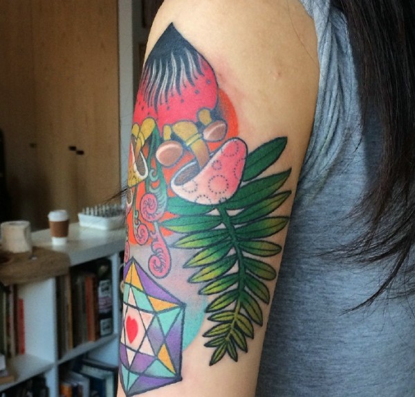 手臂一款彩色蘑菇纹身图案_臂部纹身图案大全_纹身图吧