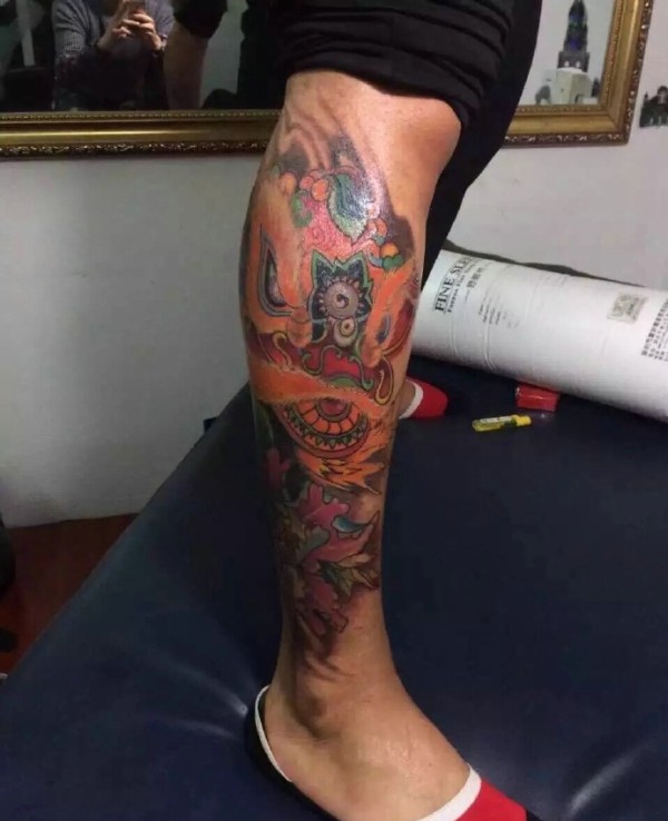 传统花腿纹身--18张传统风格的大花腿纹身图案作品