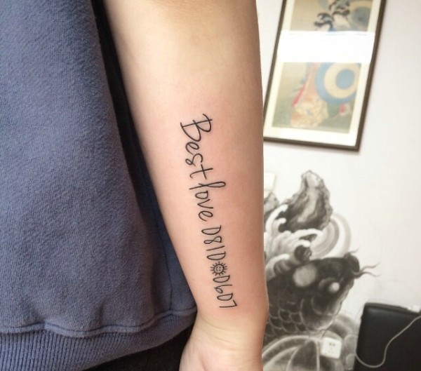 隐藏在手臂外侧的小清新英文纹身图片