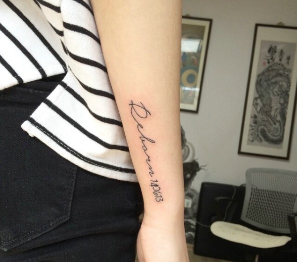 隐藏在手臂外侧的小清新英文纹身图片