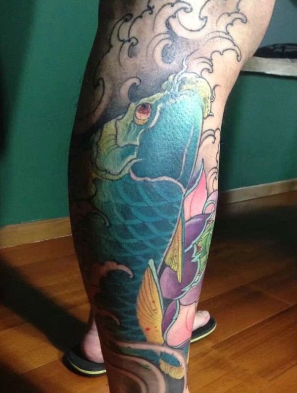 包小腿大鲤鱼纹身图片好运加倍