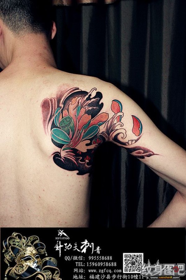 肩膀斑遮盖纹身-莲花纹身-福建针功夫胡宇刺青作品