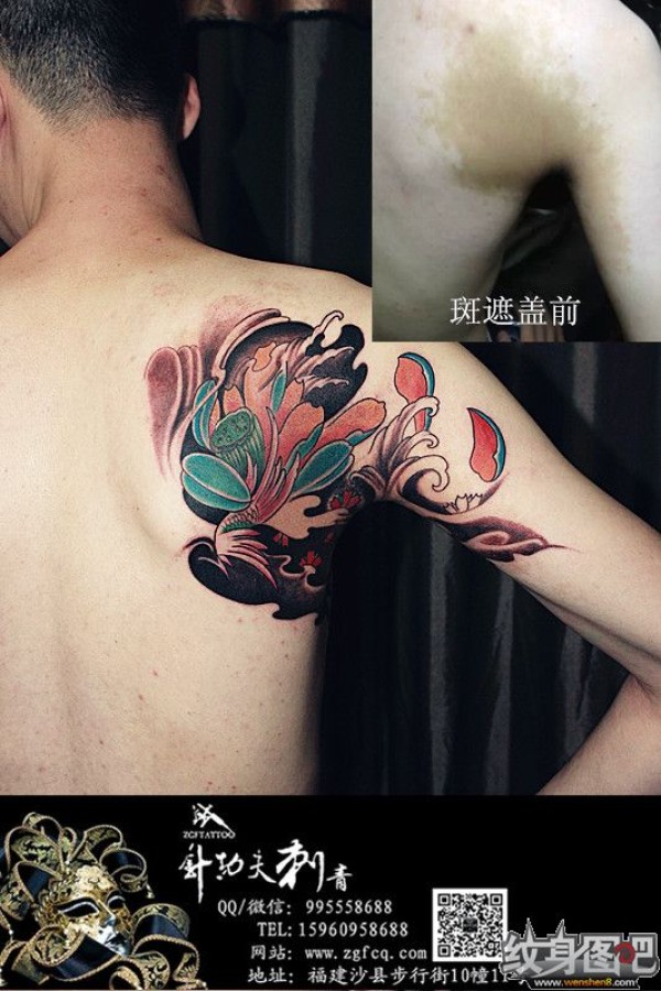 肩膀斑遮盖纹身-莲花纹身-福建针功夫胡宇刺青作品