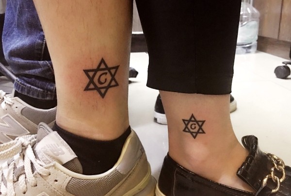 情侣腿部个性时尚的六芒星纹身图片