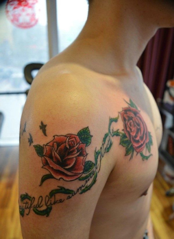 后肩唯美花藤英文图案图片_植物纹身图案大全_纹身图吧