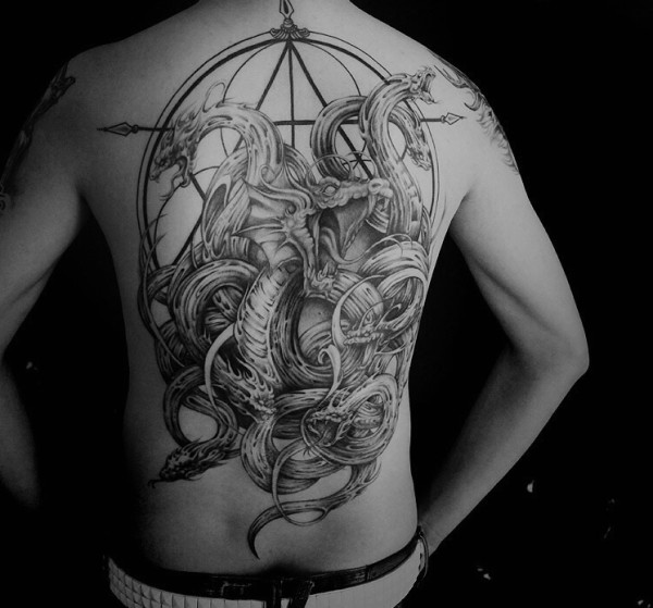 龙纹身手稿_一组老传统黑灰龙手稿纹身图案
