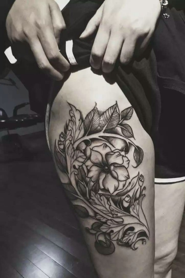男人大臂黑白彼岸花骷髅_黑白纹身图案大全_纹身图吧