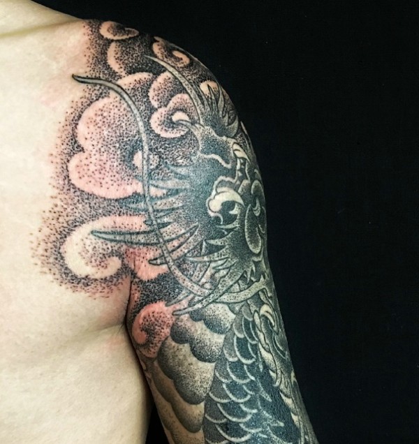 日式手彫刺青作品—半甲龙很感谢客户认可手彫刺青,手彫是日本纹身的手工雕刻技术,时间可以追溯到日本17世纪的江户时代。19世纪,手彫技术被日本黑帮挪用,被用作入会仪式,象征着从此就是江湖中人。在日式传统