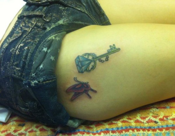 钻石钥匙蝴蝶纹身