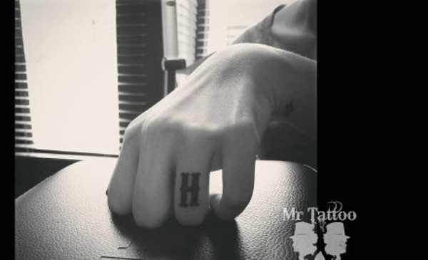 手指上的H字符纹身图案