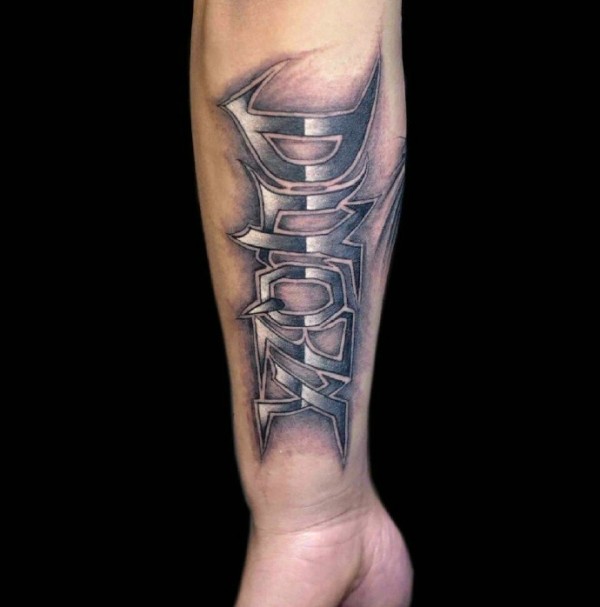 手臂内侧3d英文汉字纹身图片