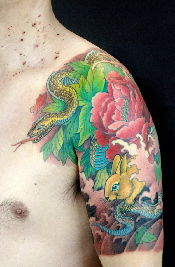 手臂莲花蛇纹身图案_臂部纹身图案大全_纹身图吧