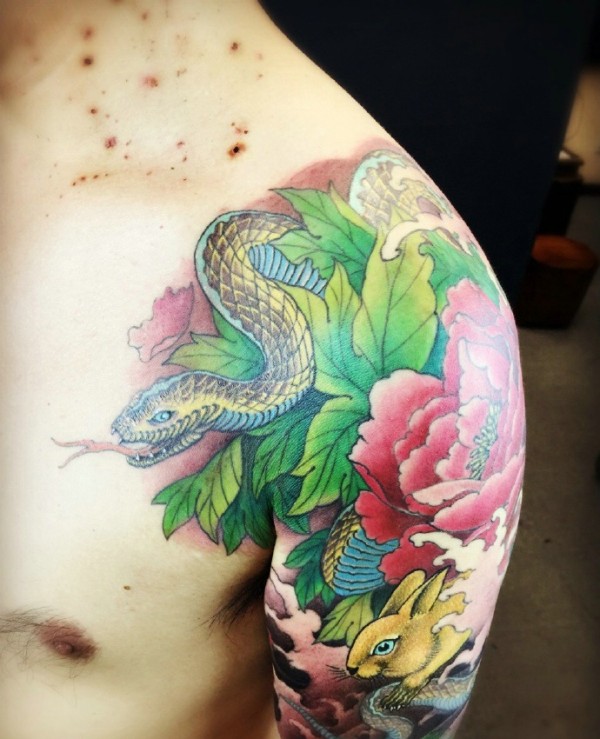 手臂莲花蛇纹身图案_臂部纹身图案大全_纹身图吧
