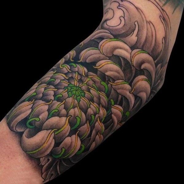 手臂3D菊花纹身图案