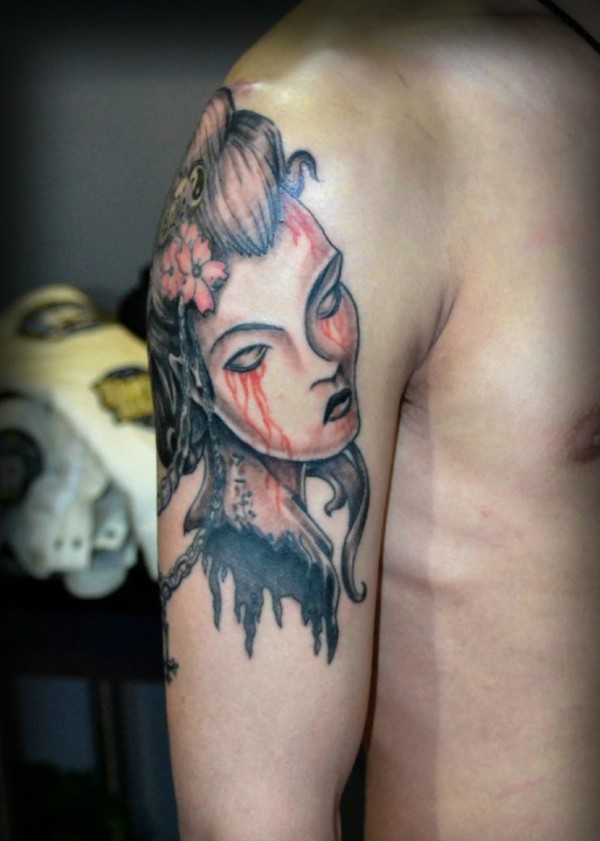 能面万媚纹身手稿_52张日式能剧面具纹身手稿图案素材欣赏