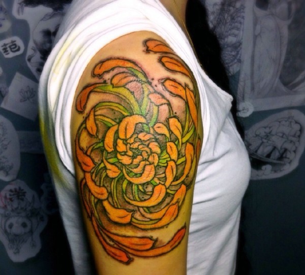 女生肩花纹身_15张女性双肩对称的肩花纹身图案作品图片