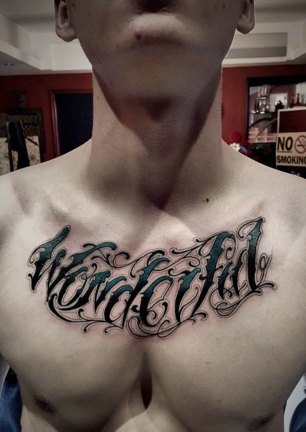 纹身图案胸部男 简洁大方的男生胸部纹身图案