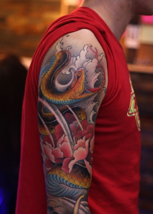 手臂莲花蛇纹身图案_臂部纹身图案大全_纹身图吧