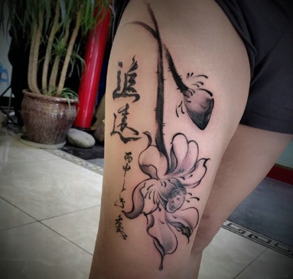 传统花腿纹身--18张传统风格的大花腿纹身图案作品