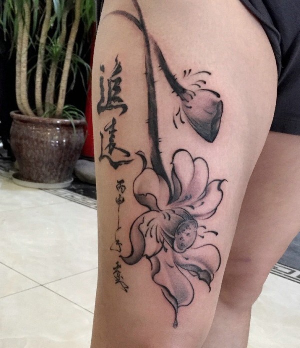 传统花腿纹身--18张传统风格的大花腿纹身图案作品