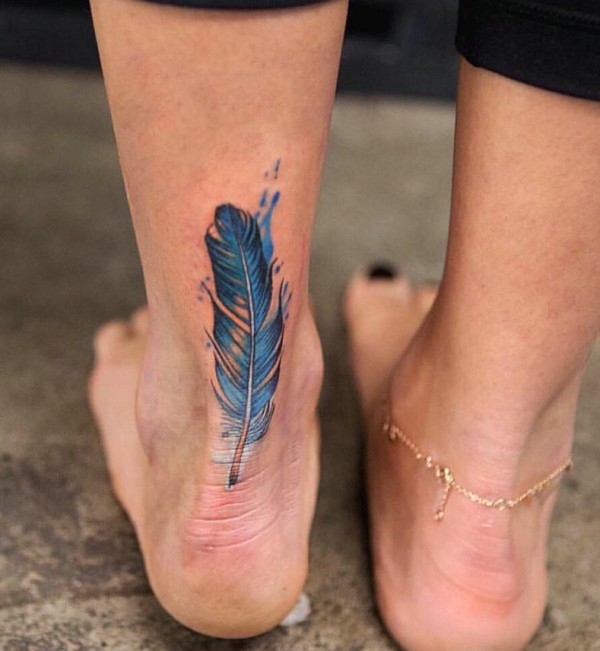 裸脚上的一片彩色羽毛纹身图片