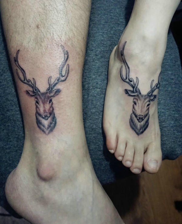 个性情侣脚部小鹿纹身图片楚楚可爱
