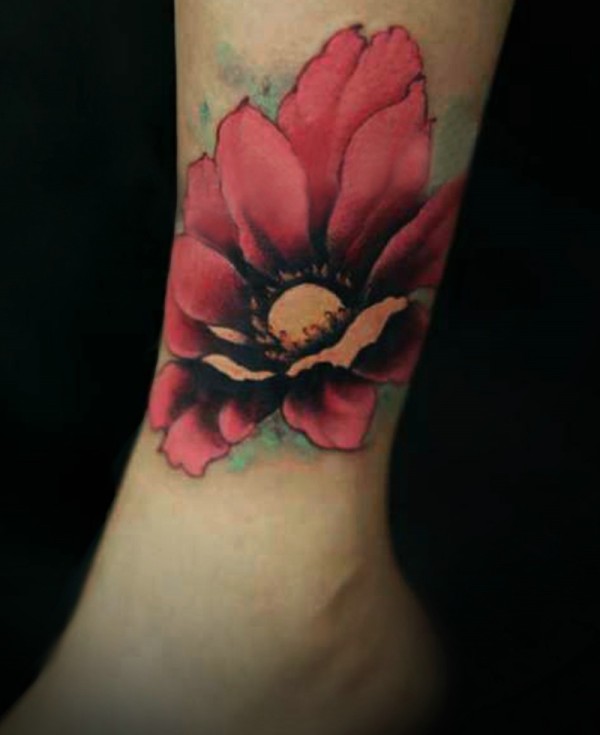 落在裸脚上的一朵鲜艳的花朵纹身图片