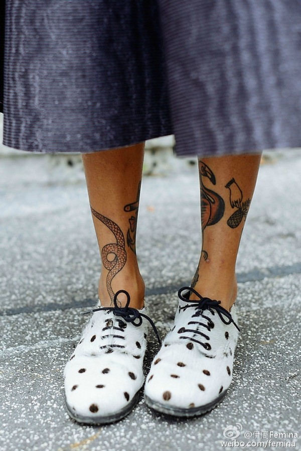 街头女生双小腿纹身图片时尚美丽